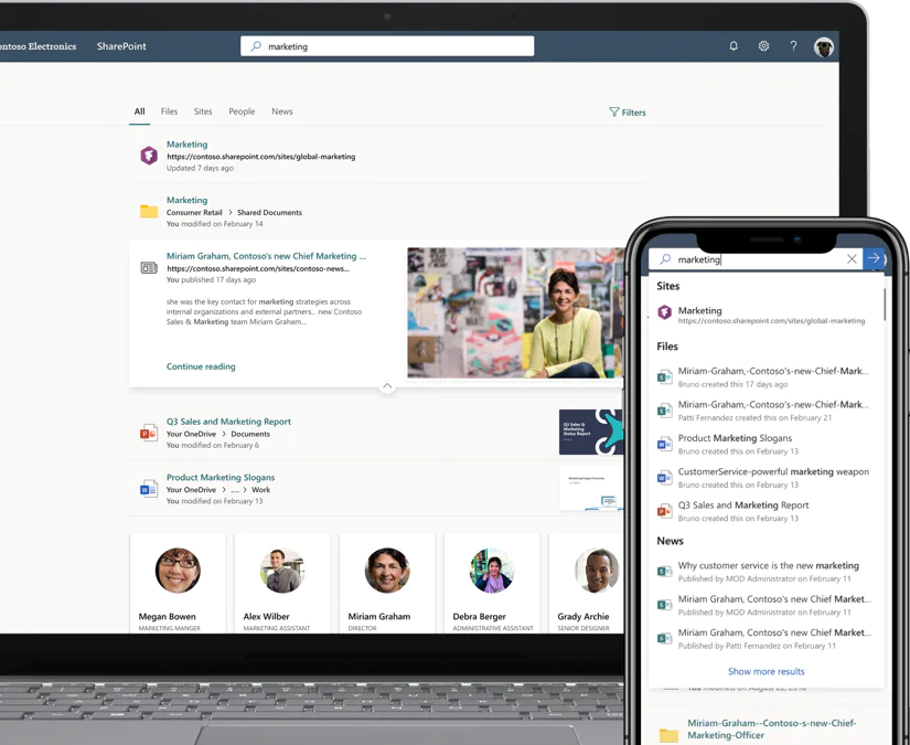 Build cohesion and inform your employees throughout your intranet. Drive organizational efficiency by sharing common resources and applications on home sites and portals. Tell your story with beautiful communication sites. And stay in the know with personalized, targeted news on the web and the SharePoint mobile apps.